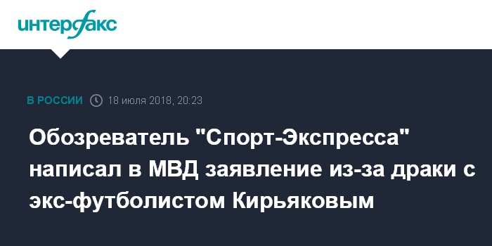 Обозреватель "Спорт-Экспресса" написал в МВД заявление из-за драки с экс-футболистом Кирьяковым