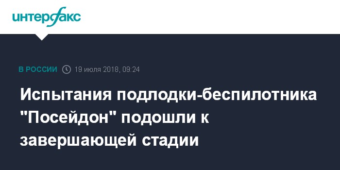 Москва. 19 июля. INTERFAX.RU - Испытания систем и элементов ядерной подлодки-бепилотника "Посейдон" вышли на завершающую стадию, сообщил ведущий аналитик группы советников начальника Генштаба ВС РФ Игорь Касатонов.