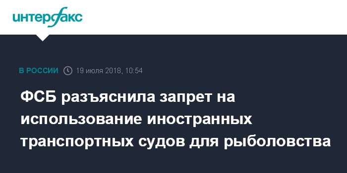 Москва. 19 июля. INTERFAX.RU - Пограничная служба ФСБ России разъяснила свои действия по запрету на использование иностранных транспортных судов для рыболовства в российской исключительной экономической зоне.