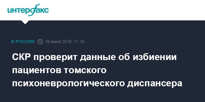 Москва. 19 июля. INTERFAX.RU - Управление Следственного комитета России по Томской области начало доследственную проверку информации о насилии в отношении пациентов Шегарского психоневрологического диспансера "Забота", сообщает пресс-служба ведомства в четверг.