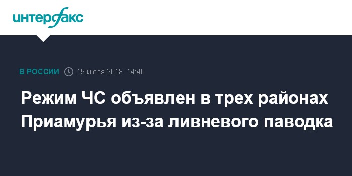 Москва. 19 июля. INTERFAX.RU - Власти Приамурья на очередном заседании региональной комиссии по ЧС ввели режим чрезвычайной ситуации в трех районах из-за ухудшающейся паводковой обстановки, сообщает пресс-служба правительства Амурской области в четверг.