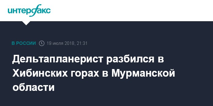 Москва. 19 июля. INTERFAX.RU - В районе Кировска, расположенного в Хибинских горах, при неустановленных обстоятельствах погиб дельтапланерист. Об этом сообщил "Интерфаксу" источник в экстренных службах Мурманской области в четверг.