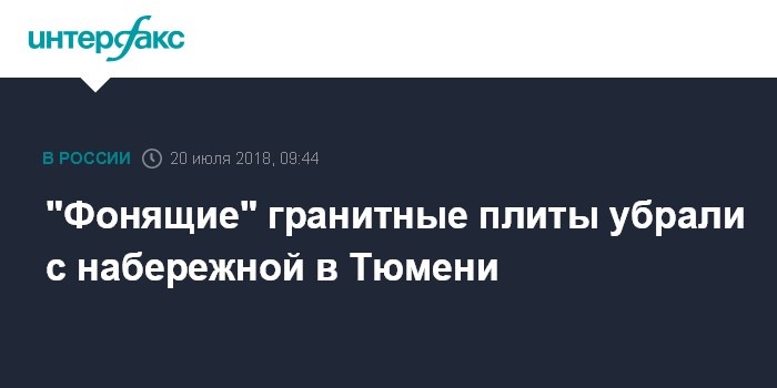 Москва. 20 июля. INTERFAX.RU - На набережной реки Туры в Тюмени заменены гранитные плиты, на которых ранее обнаружили радиационное загрязнение, сообщили в пятницу в областном управлении Роспотребнадзора.