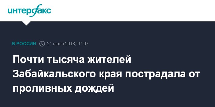 Москва. 21 июля. INTERFAX.RU - В Агинском Бурятском округе Забайкальского края во время ливневых дождей, которые прошли накануне, пострадали 956 человек, 206 жилых домов, 269 приусадебных участков, шесть мостов и восемь дорог, сообщает пресс-служба губернатора региона.