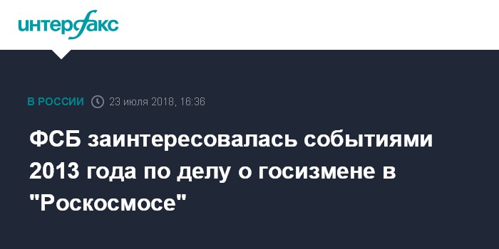 Москва. 23 июля. INTERFAX.RU - События в "Роскосмосе", в связи с которыми расследуется дело о государственной измене, относятся к 2013 году, сообщает пресс-служба госкорпорации.