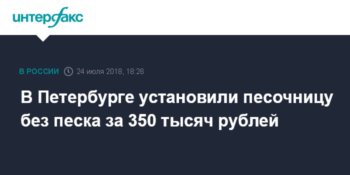 Москва. 24 июля. INTERFAX.RU - Прокуратура Санкт-Петербурга проверит информацию об установке песочницы стоимостью 350 тысяч рублей на детской площадке в Центральном районе города, сообщила пресс-служба ведомства во вторник.