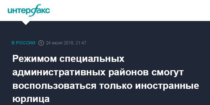 Режимом специальных административных районов смогут воспользоваться только иностранные юрлица