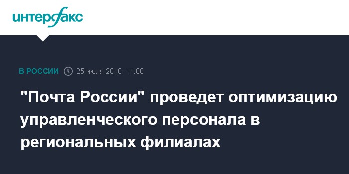 "Компания приступила к унификации системы управления в региональных филиалах. Она призвана устранить дублирующие и избыточные функции административного аппарата Управлений федеральной почтовой связи (УФПС), повысить эффективность бизнес-процессов и высвободить денежные средства на дальнейшее повышение заработных плат сотрудникам основного производства: почтальонам и операторам", - указано в сообщении.