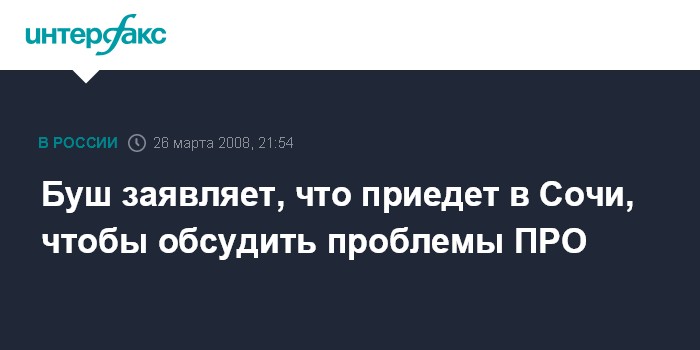 Как заявил Дж.Буш европейским журналистам перед отъездом в Бухарест на саммит НАТО, на встрече в Сочи 6 апреля он планирует обсудить вопрос о размещении элементов американской ПРО в Восточной Европе.