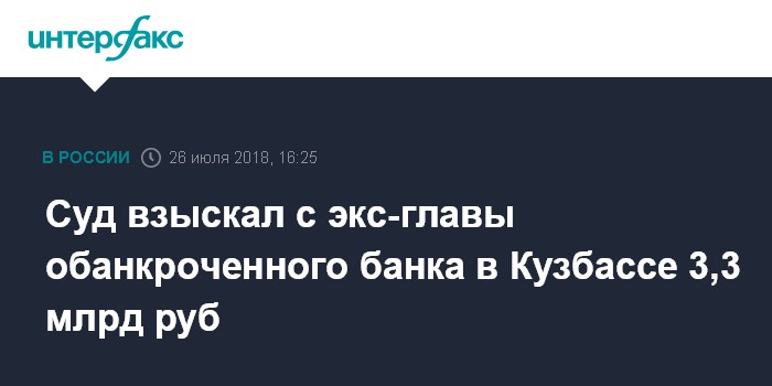 Суд взыскал с экс-главы обанкроченного банка в Кузбассе 3,3 млрд руб