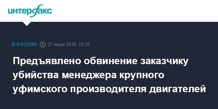Предъявлено обвинение заказчику убийства менеджера крупного уфимского производителя двигателей