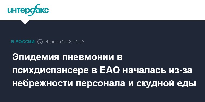 В марте и апреле 2018 года 11 подопечных интерната умерли в областной больнице Биробиджана от пневмонии. Еще более 150 пациентов были госпитализированы. В июле был уволен директор социального учреждения, еще шесть сотрудников интерната привлечены к дисциплинарной ответственности.