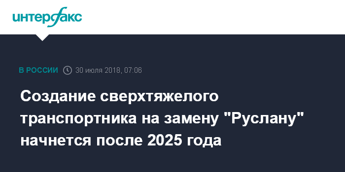 Создание сверхтяжелого транспортника на замену "Руслану" начнется после 2025 года