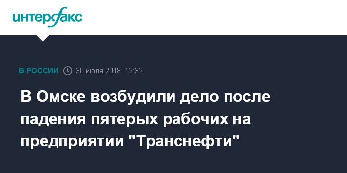 В Омске возбудили дело после падения пятерых рабочих на предприятии "Транснефти"