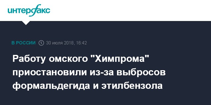 Работу омского "Химпрома" приостановили из-за выбросов формальдегида и этилбензола
