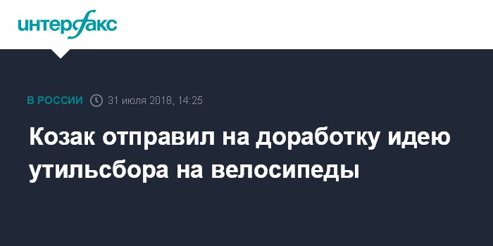 Москва. 31 июля. INTERFAX.RU - Предложение ввести утилизационный сбор на велосипеды с целью стимулирования внутреннего потребления алюминия действительно выносилась на правительственный уровень, но поддержки пока не нашла.