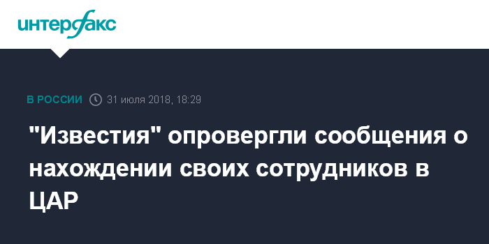 "Известия" опровергли сообщения о нахождении своих сотрудников в ЦАР