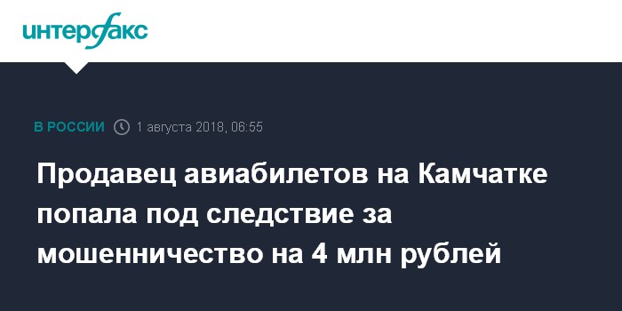 Продавец авиабилетов на Камчатке попала под следствие за мошенничество на 4 млн рублей