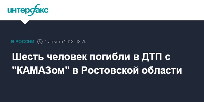 "Водитель "КАМАЗа", двигаясь в сторону Ростова-на-Дону, в связи с технической неисправностью съехал на обочину и попытался остановиться, в это время водитель "Фольксваген транпортер", двигаясь в попутном направлении, врезался в грузовой автомобиль. В результате ДТП шесть человек погибли и двое с травмами были доставлены в больницу", - говорится в сообщении.