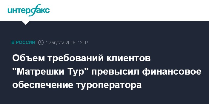 Объем требований клиентов "Матрешки Тур" превысил финансовое обеспечение туроператора