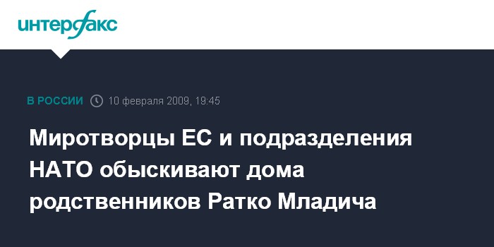 Лондон. 10 февраля. INTERFAX.RU - Военнослужащие миротворческого контингента ЕС в Боснии ведут обыск в домах, принадлежащих родственникам бывшего военного лидера боснийских сербов Ратко Младича, сообщает во вторник британская телерадиокорпорация BBC.