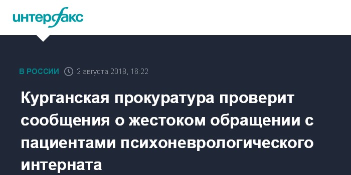 Москва. 2 августа. INTERFAX.RU - Прокуратура в Курганской области проверит обращение о ненадлежащем содержании пациентов Сычевского психоневрологического интерната.
