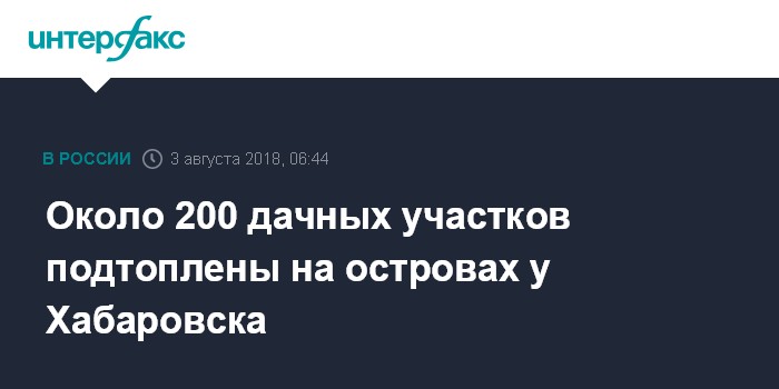 "На 3 августа в районе Хабаровска на островах Кабельный, Большой Уссурийский, в поселке Корсаково подтоплено 192 дачных участка. Сохраняется вероятность подтопления сенокосов, посевов, дорог, линий связи, дачных участков и других объектов, расположенных в низинах в пойме реки Амур", - говорится в сообщении.