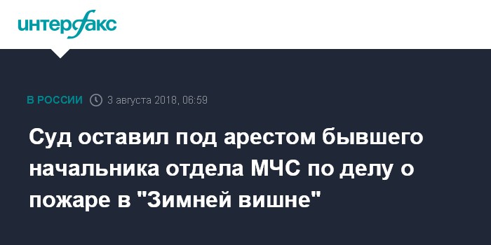 Суд оставил под арестом бывшего начальника отдела МЧС по делу о пожаре в "Зимней вишне"