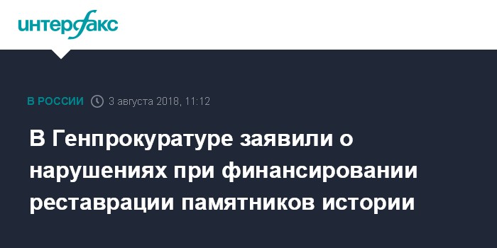 В Генпрокуратуре заявили о нарушениях при финансировании реставрации памятников истории