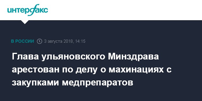 Глава ульяновского Минздрава арестован по делу о махинациях с закупками медпрепаратов