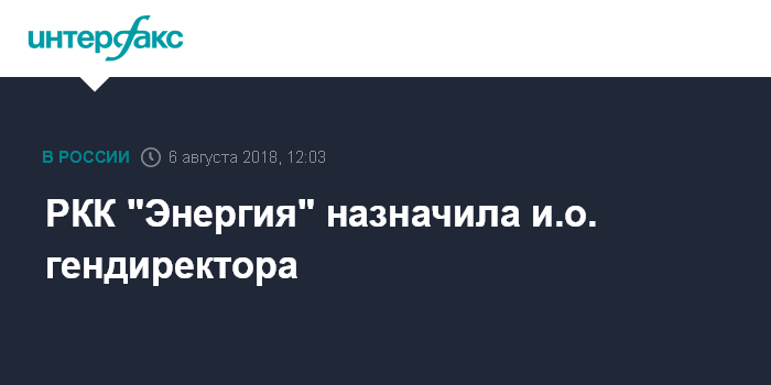 "Совет директоров принял решение назначить Романова Сергея Юрьевича врио генерального директора ПАО "РКК "Энергия" с 4 августа 2018 года", - отмечается в сообщении.