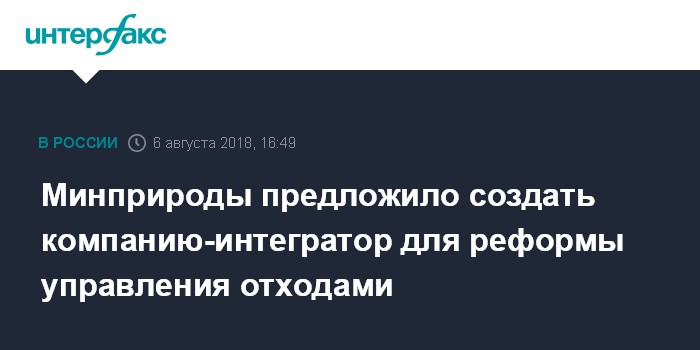 Москва. 6 августа. INTERFAX.RU - Минприроды РФ предлагает создать единого интегратора по сопровождению реформы в сфере управления отходами, сообщил журналистам глава министерства Дмитрий Кобылкин.
