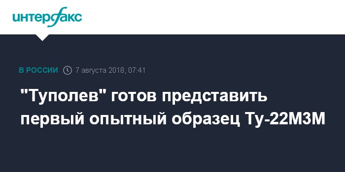 В апреле глава "Туполева" Александр Конюхов сообщил "Интерфаксу" о скором завершении работ по глубокой модернизации дальнего ракетоносца-бомбардировщика Ту-22М3. "На первом опытном образце глубоко модернизированного Ту-22М3М завершаются сборочные работы и подготовка к первому вылету, запланированному на третий квартал 2018 года", - заявлял в апреле Конюхов.