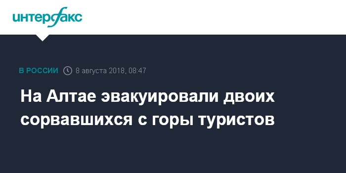 Москва. 8 августа. INTERFAX.RU - В Республике Алтай успешно завершилась операция по спасению туристов, которые сорвались при спуске с вершины Северо-Чуйского хребта, сообщает в среду пресс-центр главного управления МЧС РФ по региону.