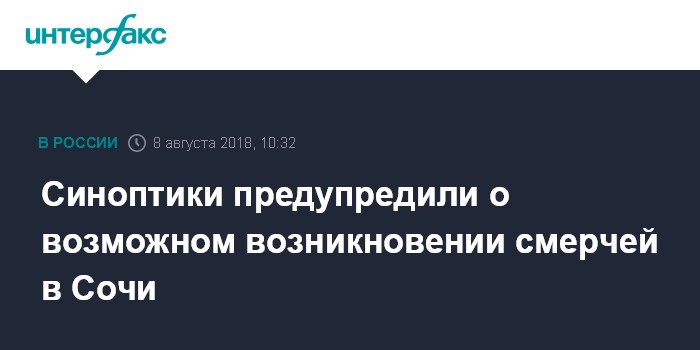 "8-го, а также в течение суток 9 и 10 августа на территории Сочи ожидается комплекс неблагоприятных метеорологических явлений: местами сильные дожди, ливни в сочетании с грозой, градом, шквалистым усилением ветра до 20-22 м/с", - говорится в сообщении.