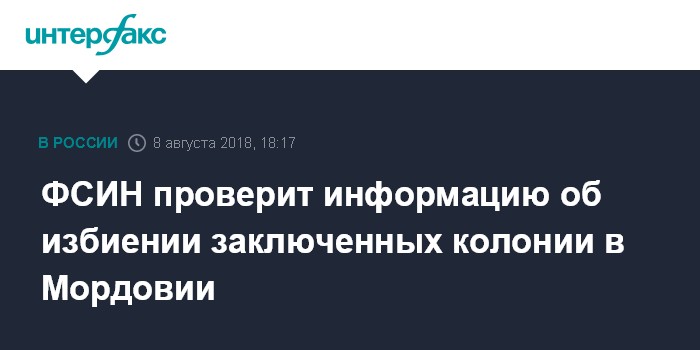 Москва. 8 августа. INTERFAX.RU - Управление ФСИН по Мордовии проверяет информацию о превышении полномочий сотрудниками исправительной колонии №4.