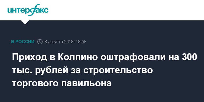 Приход в Колпино оштрафовали на 300 тыс. рублей за строительство торгового павильона