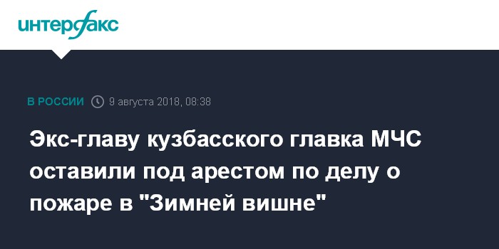 Экс-главу кузбасского главка МЧС оставили под арестом по делу о пожаре в "Зимней вишне"