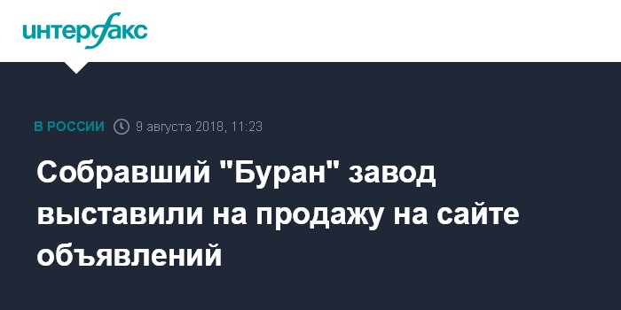 Собравший "Буран" завод выставили на продажу на сайте объявлений