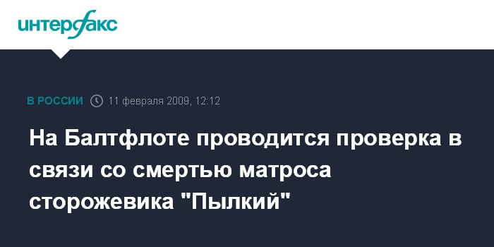 Москва. 11 февраля. INTERFAX.RU - Hа Балтийском флоте (БФ) сотрудники военно-следственного управления проводят доследственную проверку по факту смерти матроса из экипажа сторожевого корабля "Пылкий", сообщил "Интерфаксу" источник в штабе флота.
