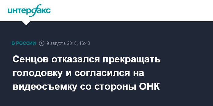 Сенцов отказался прекращать голодовку и согласился на видеосъемку со стороны ОНК