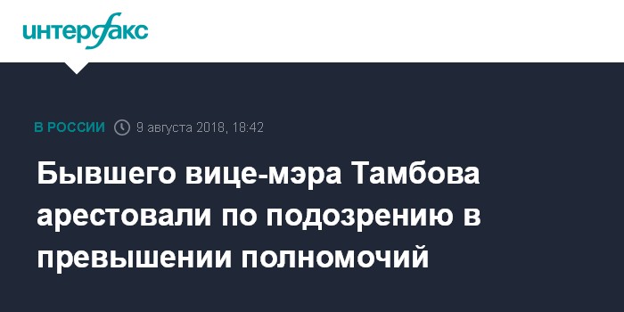 Москва. 9 августа. INTERFAX.RU - Ленинский районный суд Тамбова арестовал бывшего заместителя мэра города Юрия Дубовика, сообщается на сайте суда.
