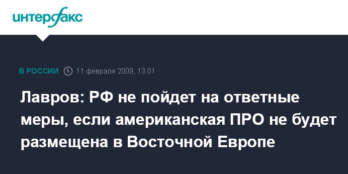 Лавров: РФ не пойдет на ответные меры, если американская ПРО не будет размещена в Восточной Европе