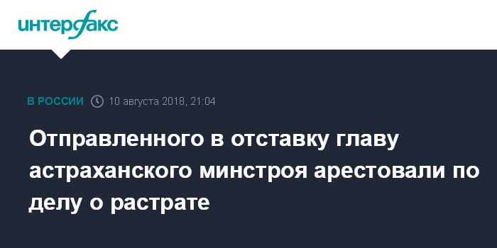 Отправленного в отставку главу астраханского минстроя арестовали по делу о растрате