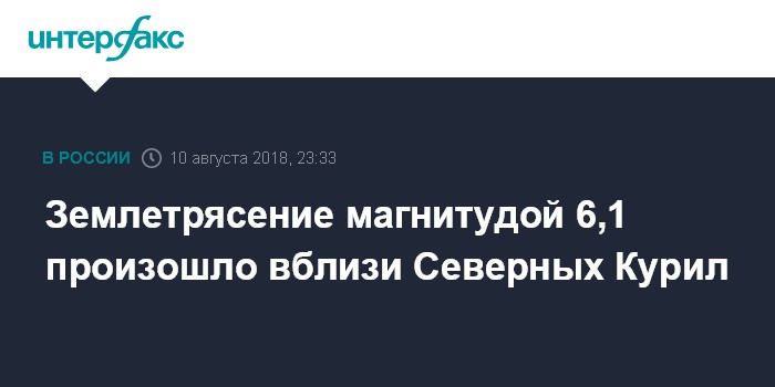 Москва. 10 августа. INTERFAX.RU - Землетрясение магнитудой 6,1 зарегистрировано в субботу утром в Тихом океане возле Курильских островов, сообщили агентству "Интерфакс" в Сахалинском филиале единой Геофизической службы РАН.