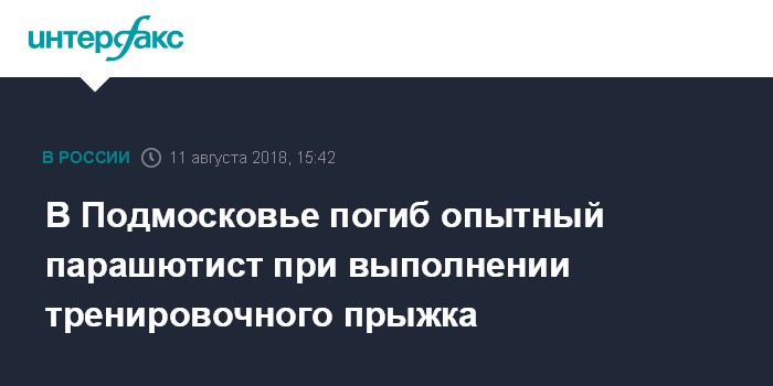 Москва. 11 августа. INTERFAX.RU - Московское следственное управление на транспорте проводит доследственную проверку по факту гибели в Московской области парашютиста, который выполнял тренировочные прыжки на аэродроме "Большое Грызлово".