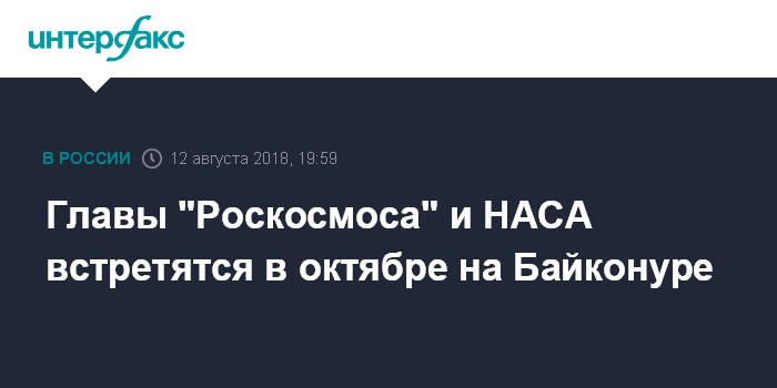 "Встреча Дмитрия Рогозина и Джима Бранденстайна должна состояться в октябре 2018 года на Байконуре", - приводятся в сообщении на сайте госкорпорации слова руководителя пресс-службы Владимира Устименко.