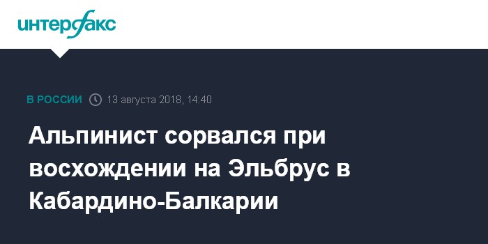 Москва. 13 августа. INTERFAX.RU - Участник восхождения сорвался на Эльбрусе, спасатели вышли на помощь, сообщает пресс-служба ГУ МЧС по Кабардино-Балкарии в понедельник.