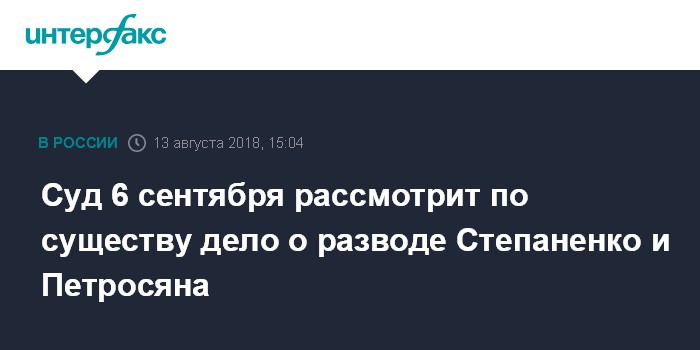 Суд 6 сентября рассмотрит по существу дело о разводе Степаненко и Петросяна