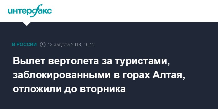 Вылет вертолета за туристами, заблокированными в горах Алтая, отложили до вторника